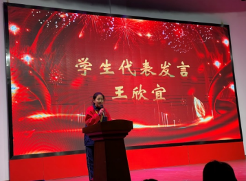 第三項是由學生代表王欣宜同學發言。她先帶同學們回憶了52個小時之前我們在家安逸美好的生活,之后指出我們現在學習的艱苦與我們之所以努力學習的緣由。她動人的演講帶動了整個會場的氣氛,使得眾多同學都產生了共鳴,開始反思自己之前學習上的散漫和懈怠,堅定了奮斗的決心。