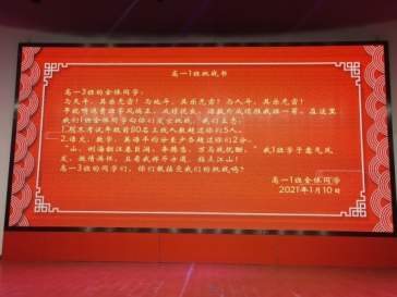 白駒過隙,斗轉星移,臨近期末,為了給同學們明確期末復習的方向,營造良好的學習氛圍,1月10日晚,我校高一高二年級全體師生在大報告廳舉行了期末備考動員大會。