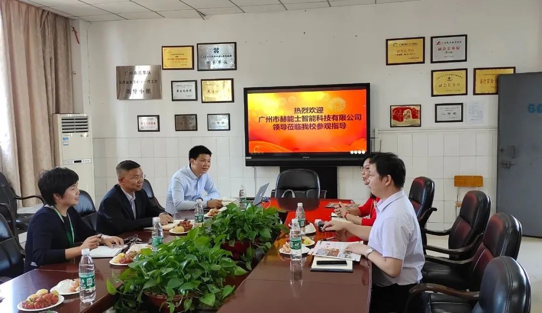 對于雙方企業合作事宜,廣州市赫能士智能科技有限公司反應快速,11月12日,廣州市赫能士智能科技有限公司總經理趙艷需、經理王大蓉親臨我校,并且與我校執行校長肖中圓、理工系主任王則如、年級主任肖亞軍共同商議雙方校企合作,并進一步落實方案。