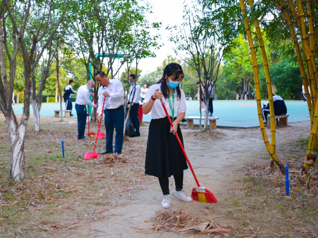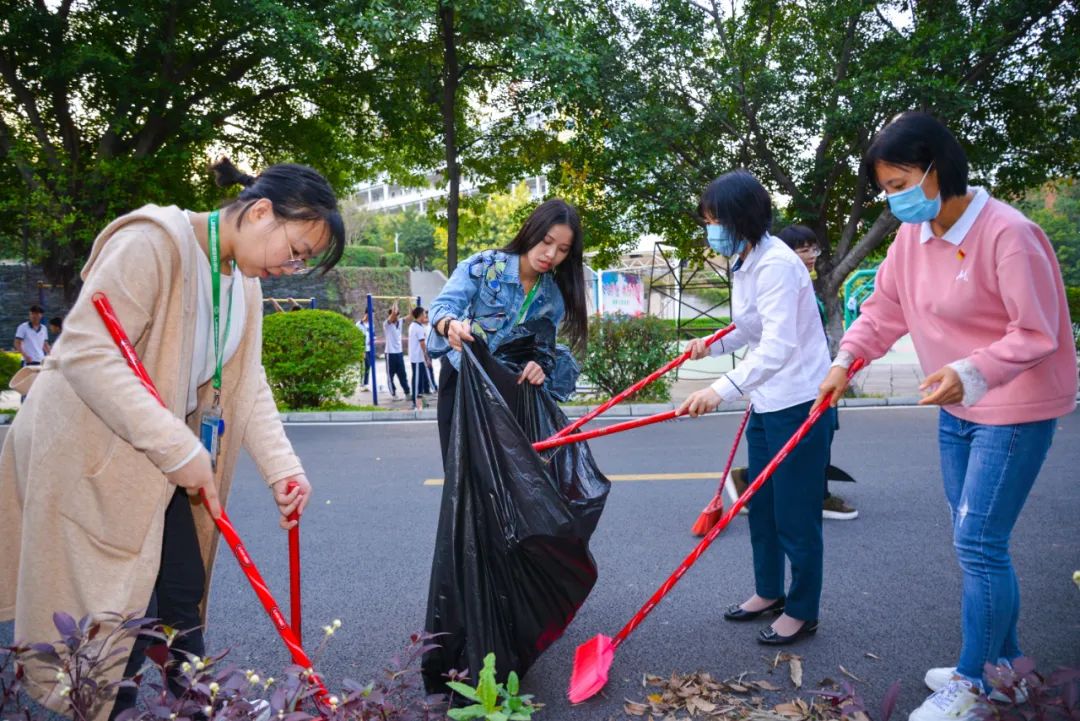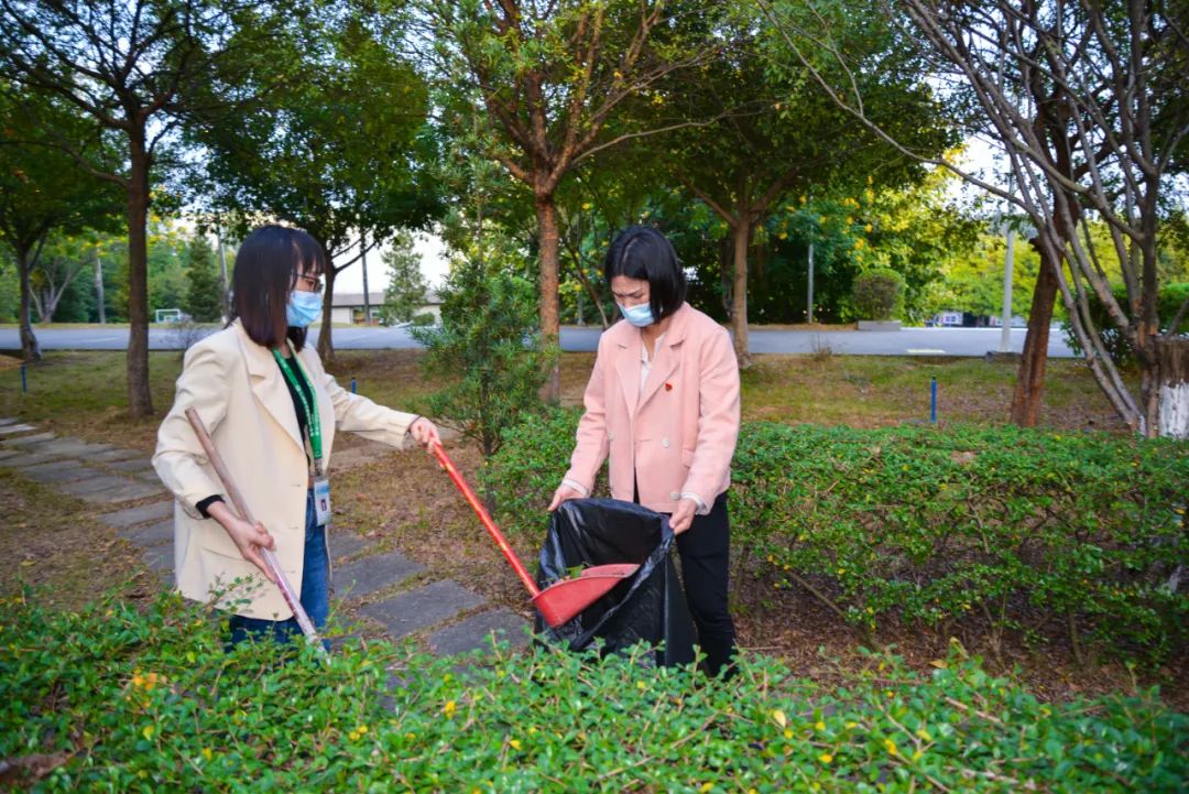 簽約儀式結束后,兩個黨支部全體黨員分成4個小組,聯合開展校園衛生清潔活動。