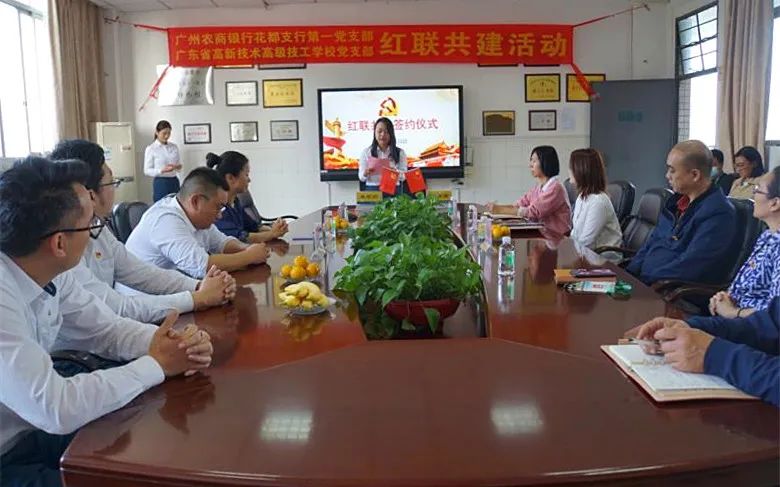 為進一步加強我校黨組織建設,提升新形勢下黨支部工作成效,實現黨建優勢互補,我校黨支部與廣州農商銀行花都支行第一黨支部舉行“紅聯共建”簽約儀式,開展黨建共建活動。