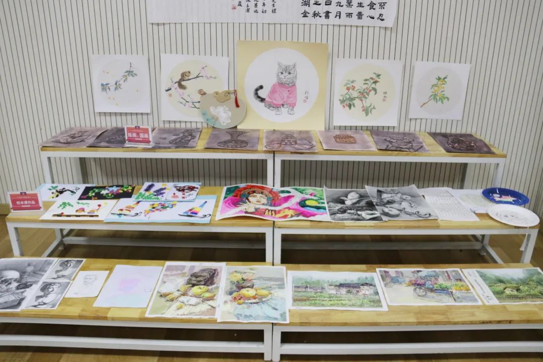 此次展覽共展出校本作品400余件,以校本教材、導(dǎo)學(xué)案、3D作品打印、手工、扎染、國(guó)畫、書法、陶藝、創(chuàng)意繪畫等創(chuàng)作為主。作品立意獨(dú)特,想象奇妙,童趣盎然,突出了鮮明的時(shí)代主題。此次校本作品展覽既是素質(zhì)教育的展示、也是審美情趣的展示,在孩子們的作品中,我們可以看到他們將國(guó)畫、扎染、手工、書法等技藝嫻熟運(yùn)用。